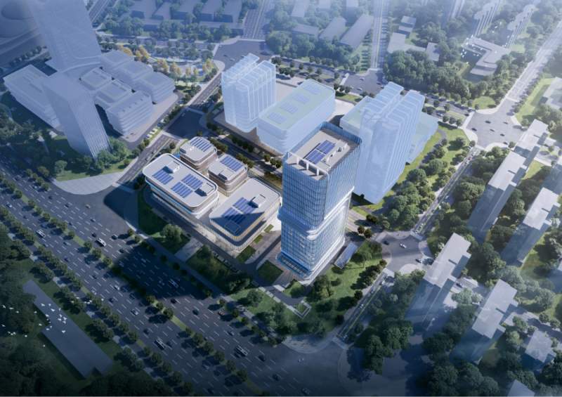 / 园区布局:1栋高层楼宇、2栋高层厂房、2栋多层厂房,部分建筑高度50米以上、层数20层以上