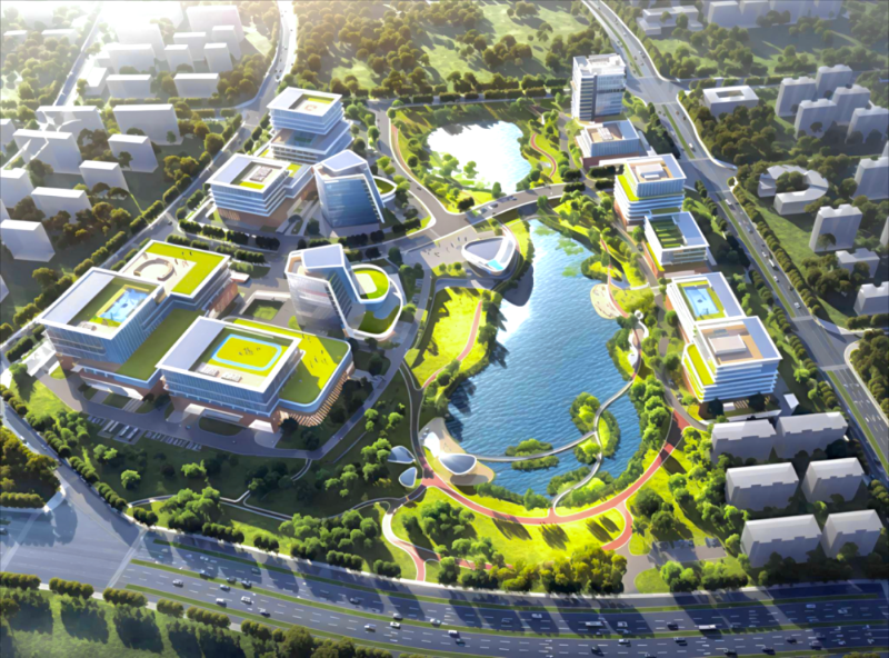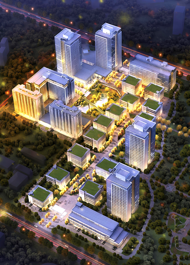/ 园区布局:1栋招商中心、6栋高层办公楼、2栋人才公寓、13栋独栋,300套精装修公寓